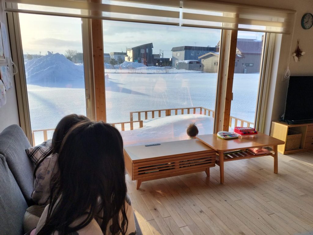 お施主様コメント:子供達は大きな窓から見える雪景色を見るのが大好きです。