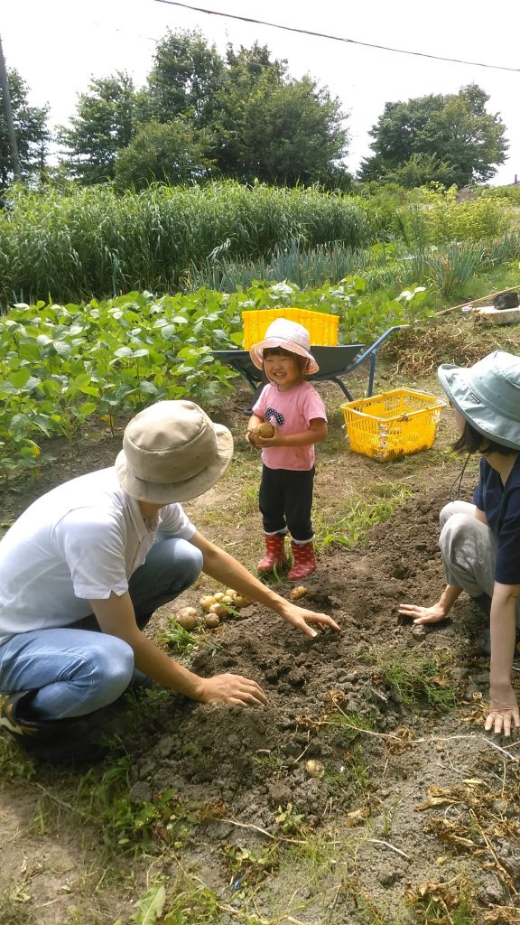 お施主様コメント:金沢の畑で出来たジャガイモの厚別から来た孫達と収穫。早速、新じゃがいもでコロッケ🧆を作りました。